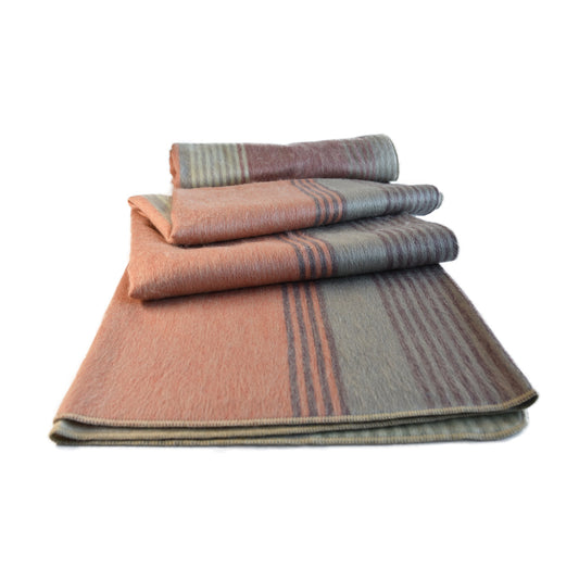 Brown and Greed Striped Baby Alpaca Wool Blanket 229 cm x 178 cm
