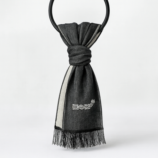 Charcoal-Ivory Reversible Alpaca Scarf with Embroidery